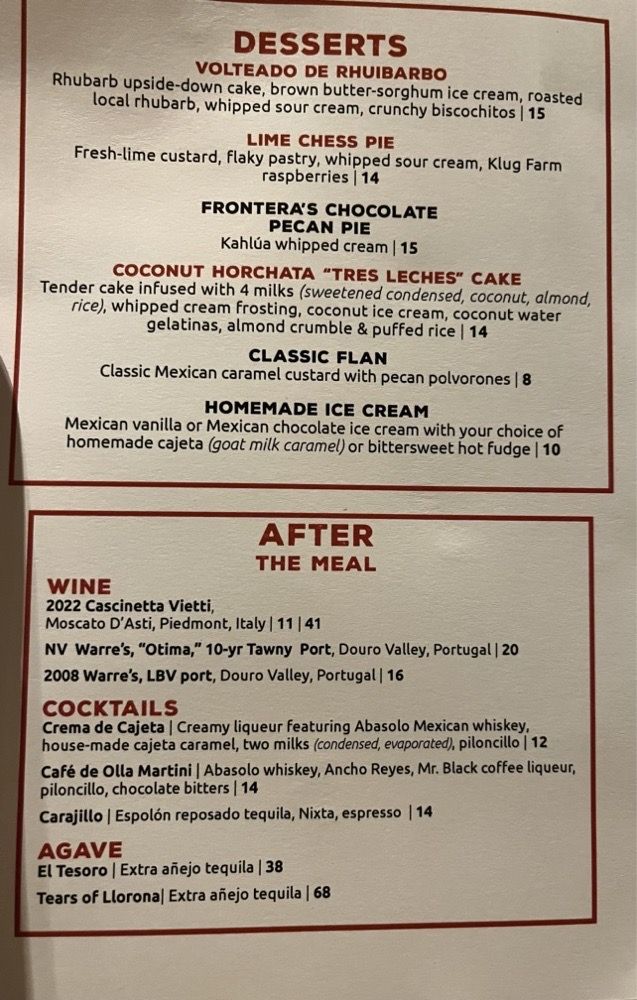 Located in Chicago, Frontera Grill offers a vibrant Mexican dining experience with a focus on delicious desserts. The menu includes a variety of options for different dietary preferences, including vegan choices. Customers have praised the tender and juicy steak and chicken dishes, along with flavorful salsas and margaritas. The ambiance is described as classy, casual, and suitable for various occasions, from dinners to group gatherings. The outdoor seating and excellent service add to the overall dining experience. While some customers found certain dishes slightly lacking in flavor, the majority highly recommend Frontera Grill for its unique and delicious offerings. With a diverse menu and top-notch service, this establishment stands out as a must-visit Mexican restaurant in Chicago.